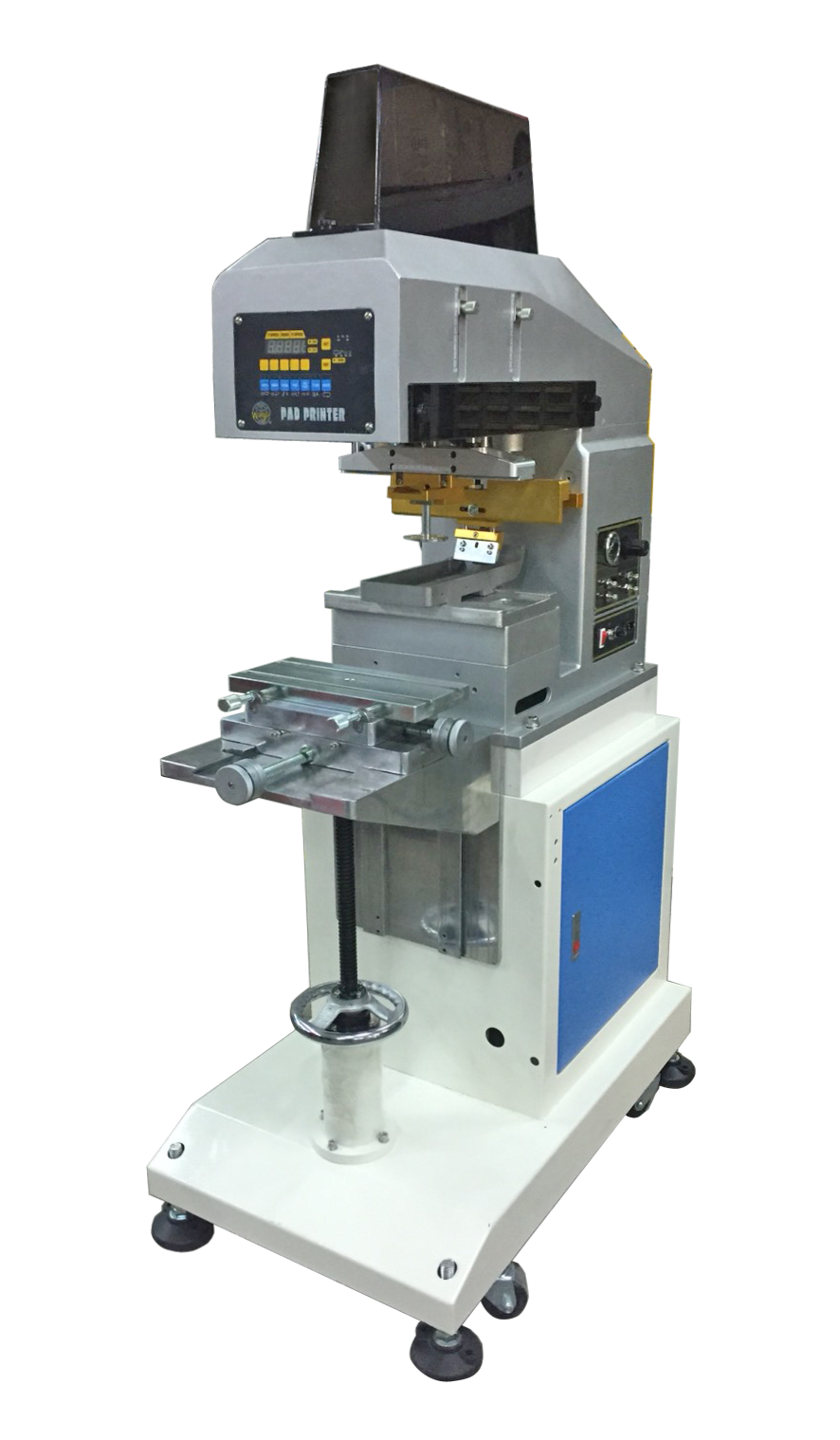 熱風裝置: 鼓風機一台,電熱棒兩組,電子溫度控制器1組,熱風管一對二兩組。熱風溫度可控制,對準膠頭與被印物,以加快油墨乾燥速度。 |