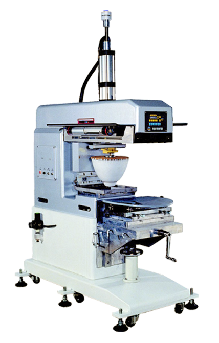 吹風機架 可固定於機台兩側,使用一般家用吹風機放在吹風機架上,可調整吹風機對準膠頭或印刷物印刷位置上,以加快印刷油墨乾燥速度。 | 熱風裝置: 鼓風機一台,電熱棒兩組,電子溫度控制器1組,熱風管一對二兩組。熱風溫度可控制,對準膠頭與被印物,以加快油墨乾燥速度。 | 除塵裝置: 被印物印刷前,可以使用此裝置將物件上的粉塵吹落,當物件靠近除塵裝置時,噴風自動啟動,遠離即停止。 | 十字雷射光標線器: 輔助對位使用,人工將物件基準點與十字雷射光線對齊並固定然後再印刷。 |