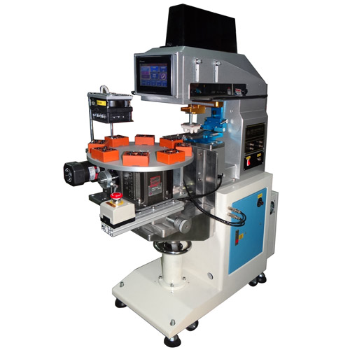 八站轉盤治具,操作人員在外取放,連續印刷時較無時間壓力。