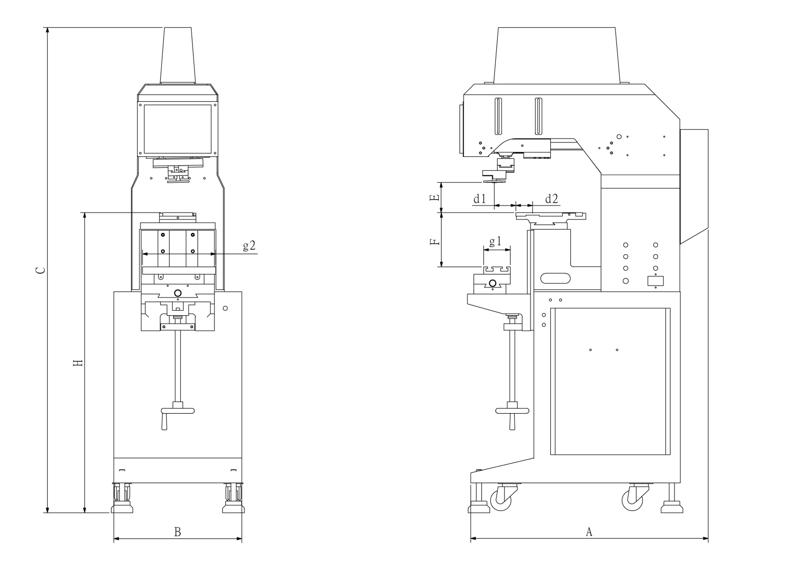 | Model | A | B | C | d1 | d2 | E | F | g1 | g2 |